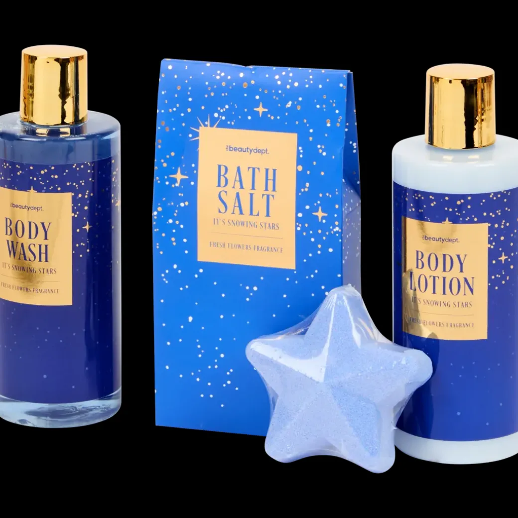 - Avec gel douche, lotion corporelle, bombe de bain et sels de bain