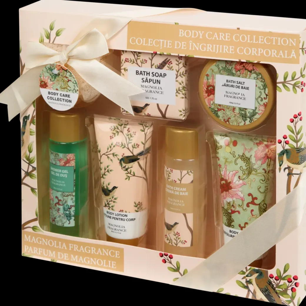 - Avec un gel douche, une lotion corporelle, une crème de bain et une fleur de bain